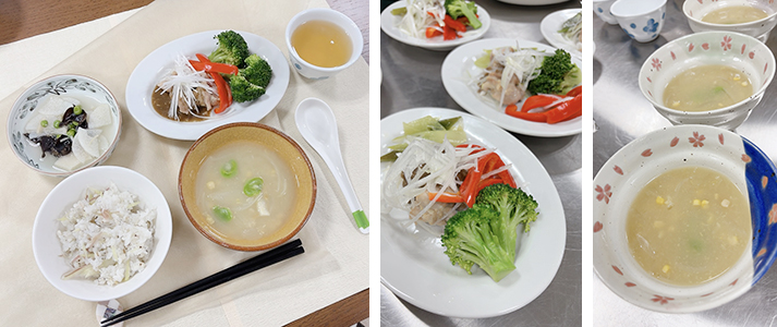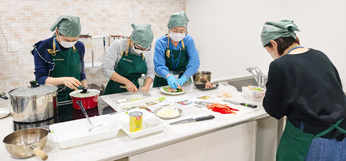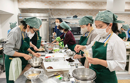 午後の調理実習では、午前の学びを踏まえ、季節の食材を使った薬膳料理づくりに挑戦しました。食材の効能を意識したメニュー構成や、調理のポイントを講師が丁寧に解説し、受講生同士が協力しながら実習を進める姿が見られました。